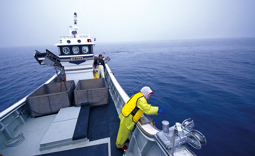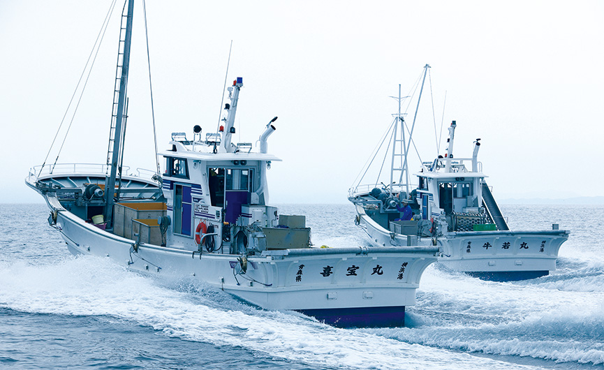 「走る際のしぶきの打ち込みが無く、快適です。デッキは広く作業性も抜群、また特に繁忙期に必要とされる積載量も申し分なく、満足しています」と、蛯沢優介さん(牛若丸)、杉山亘さん(喜宝丸)の2人の船主は口を揃えます。