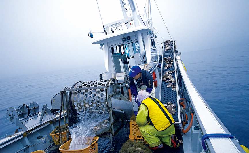 陸奥湾の中でも、斃死と闘いながら3年貝を育てきる横浜町のホタテは、大きさだけでなく、その味わいなど、品質で頭がひとつ抜けていると評判です。