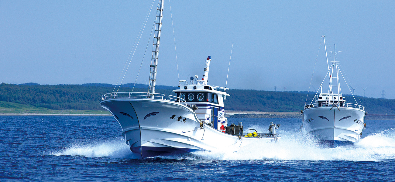 オホーツクの荒海で鍛えられた凌波性、耐航性に優れたこの船型は、今回初めて陸奥湾に導入されたもの。
