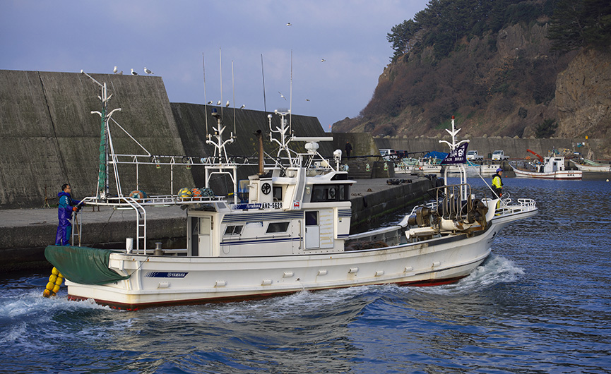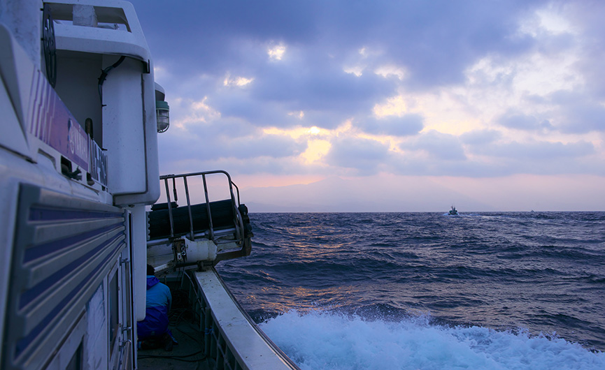 船主の沖見一男さん、一男さんの長男・貴彦さん、そして一戸誠さんの3人を乗せた「第五十八福神丸」は沖へと向かいます。