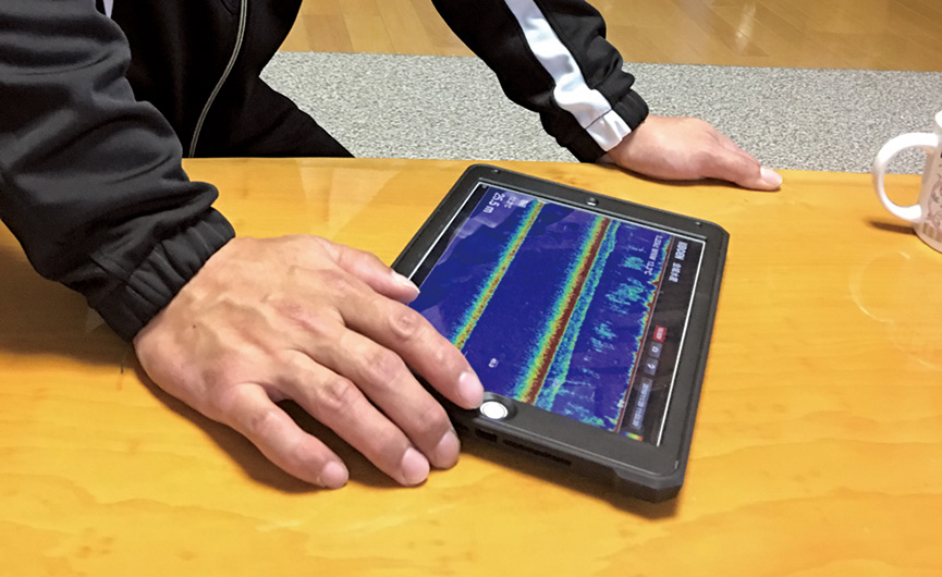 これまで漁場に行って揚げてみなければわからなかった網の中の漁獲状況が、自宅にいながら市販の端末を介して判断でき、無駄な操業を減らすことにおいて省力化の一助となっているのです。